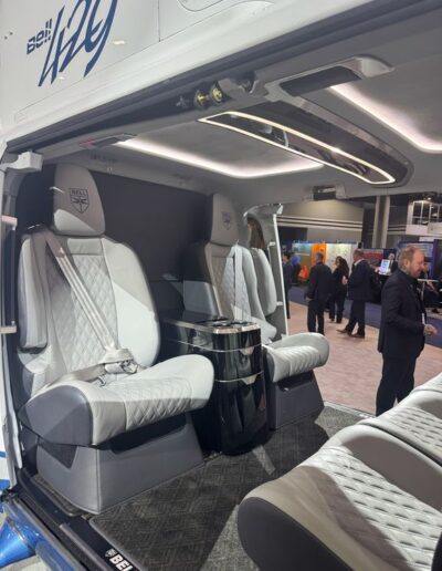 • Le Luxe (VVIP) : Pour nos clients corporatifs, le niveau de finition explose. La série Designer du Bell 429 avec ses cuirs gris matelassés sur mesure est spectaculaire. L’Airbus ACH140 s’est également fait remarquer par l’ergonomie de sa cabine et, surtout, par sa soute à bagages géante capable de stocker les plus grosses valises Rimowa sans compromis sur l’espace passager.