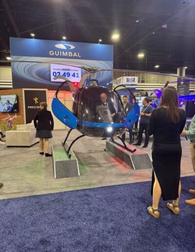 L’écolage civil : Le « Teasing » de Guimbal Le fleuron français, Hélicoptères Guimbal, célébrait la livraison de son 400ème Cabri G2 (un superbe modèle bleu exposé). Mais tous les regards étaient tournés vers le grand écran affichant un compte à rebours : « Something GRAND is coming ! ». Tout le marché attend avec impatience la révélation de leur futur grand modèle (le G5 5 places), qui devrait être équipé de la suite avionique Garmin G500 TXi. Le suspense reste entier !